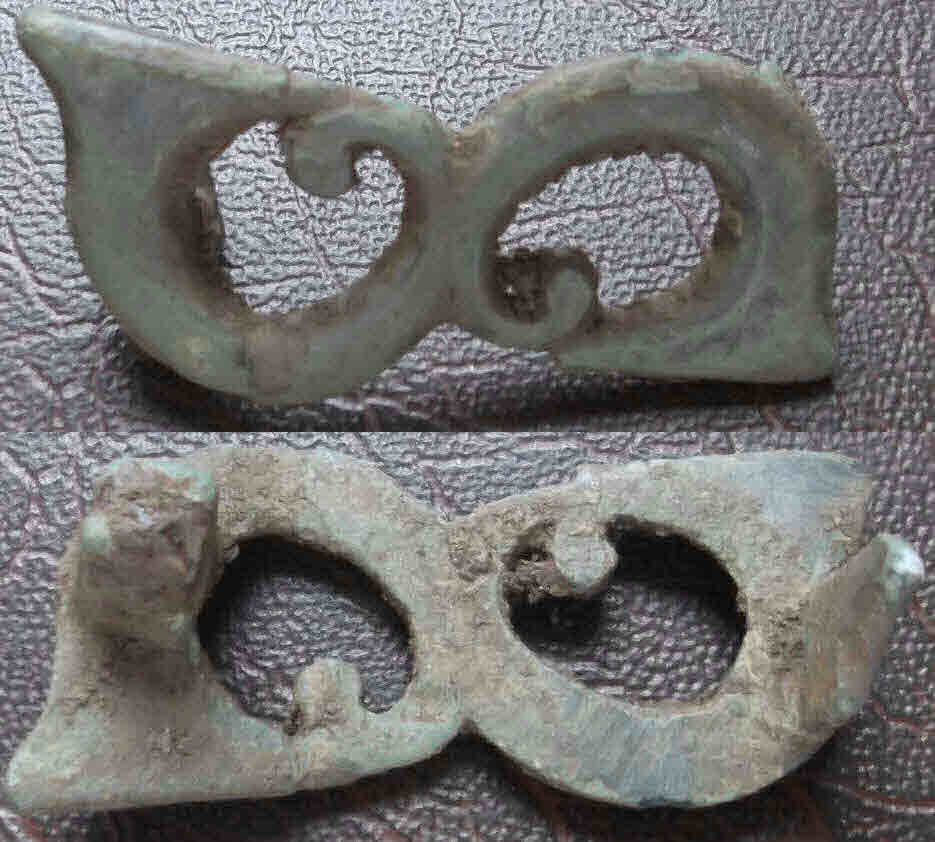 Pin foot terminal; Celtic scroll motif decoration: 39mm: