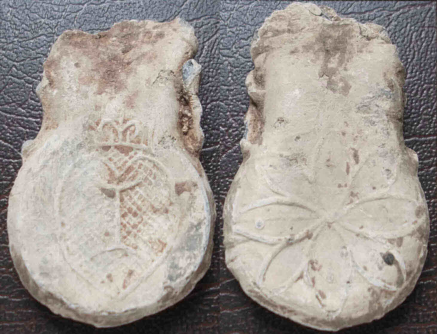 Pilgrims Ampulla - ´cross-hatch´ front decoration & daisy pattern on