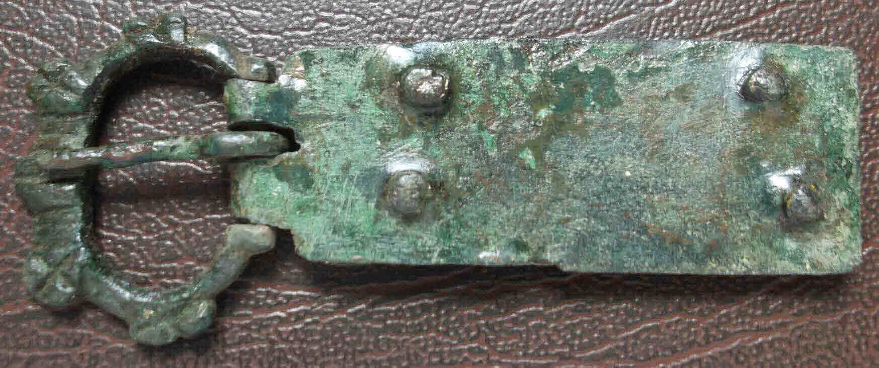 Large bronze Locking Belt Buckle; surfaces ragged but complete: 62mm