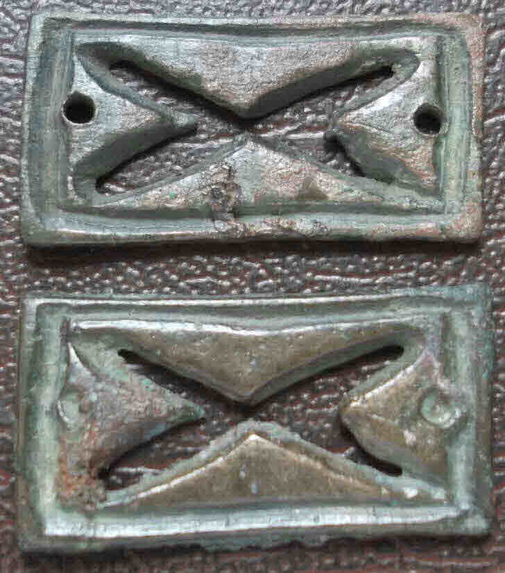 Bronze Openwork Belt Fittings, each with cut-out saltire cross **