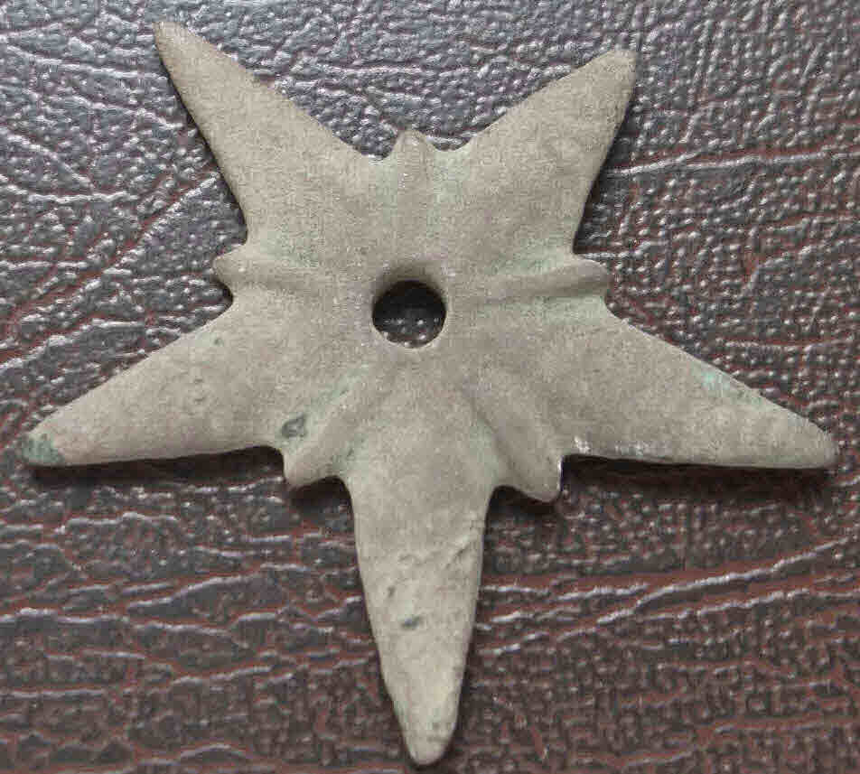 large bronze 5-pointed Spur Rowel (leaf shaped points); 42mm