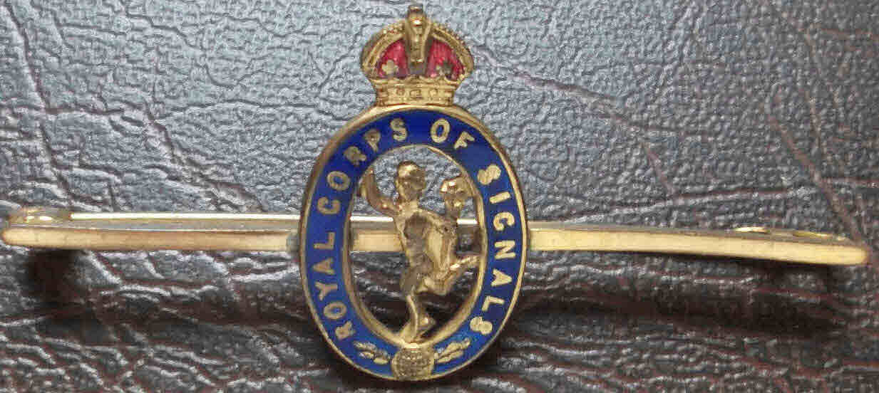Brooch; WW1: Royal Corps of Signals: brass/enamel bar type: complete