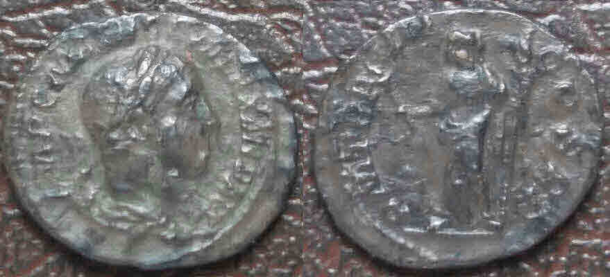 218-222 A.D., AE Denarius; probably mostly copper minus the