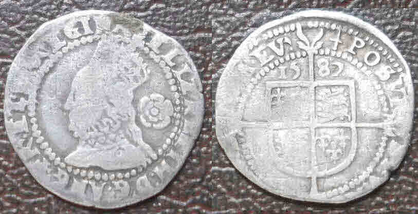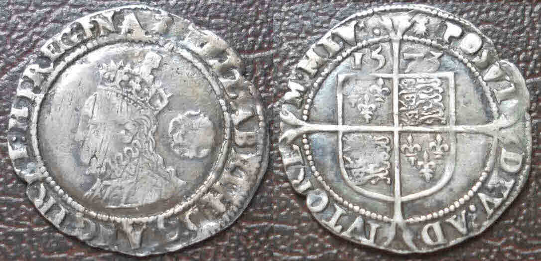 portrait; reverse off-struck with part legend. OBV: 'ELIZABETH