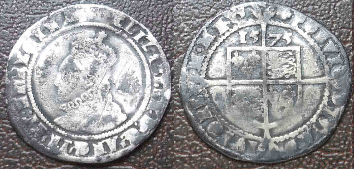 1558-1603, Halfgroat 6th issue; a dink in centre