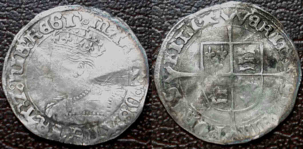 Philip & Mary; 1554-1558, Groat; obverse crease slight stress fracture resulting;