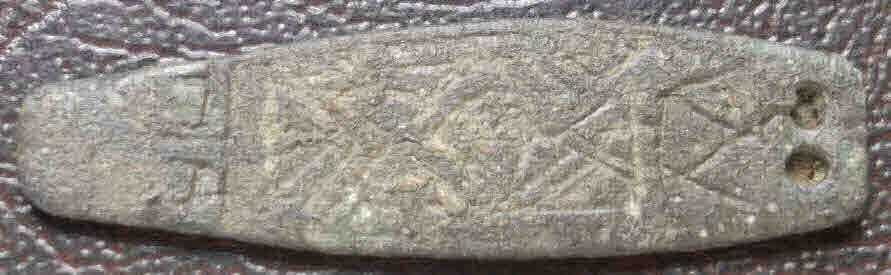 Ceremonial neck pendant; decorated hook with one axe pendant