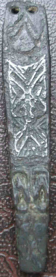Bronze Strap-End with Trewhiddle style central panel:39mm |