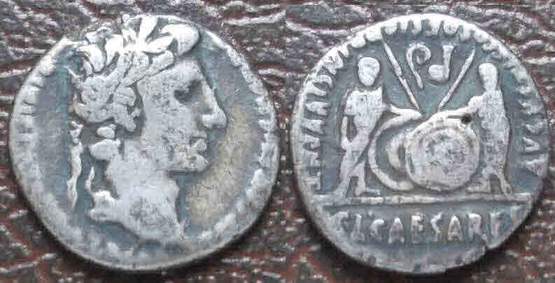 32-31 B.C., AR Denarius; much worn detecting find as often the