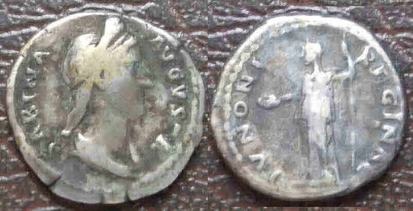 98-117 A.D., AR Denarius; fair bit of toning but with
