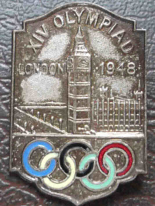 1948 Olympics silver/enamel badge: London X1V Olympiad: nice complete